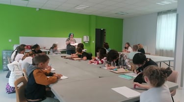 Travail sur les expressions, les mouvements, les proportions du corps , la mise en couleur aux crayons, à l’aquarelle...